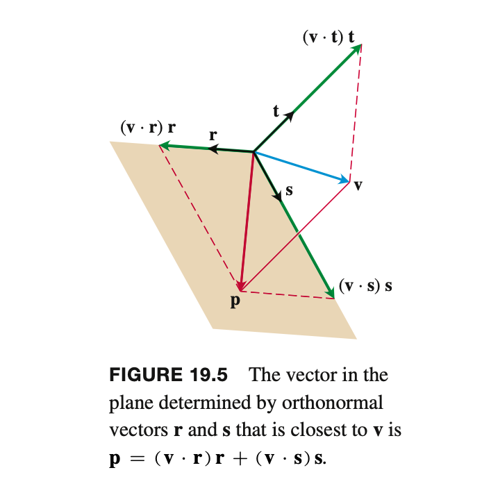 if is an orthonormal basis for three-dimensional space and v is a vector, then the linear combination of that is closest to is.